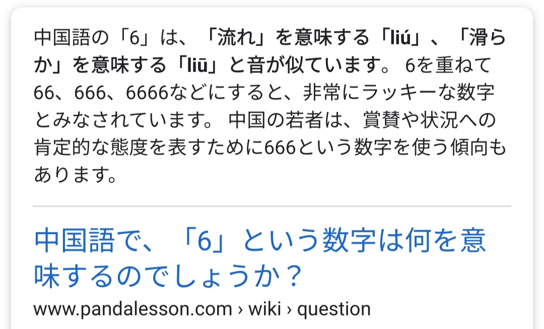 中国で縁起良いのって8だった気がするけどなんで6なんだろ