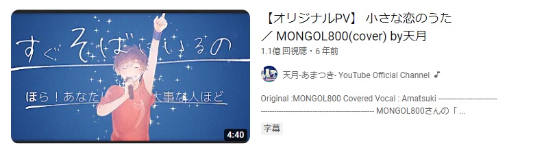 1億だか10億だか再生されてた小さな恋の歌のカバー消えてんの草