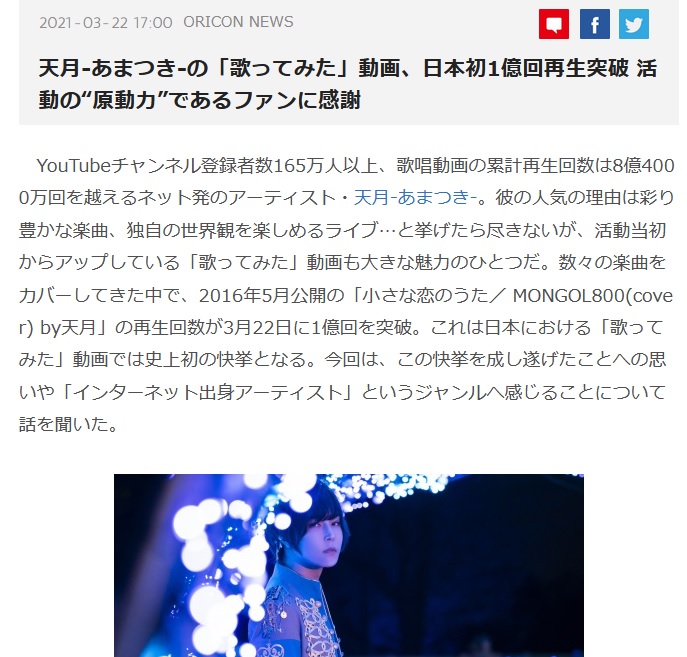 天月さん、日本初の歌ってみた1億再生を記録した動画が消されてしまう…
