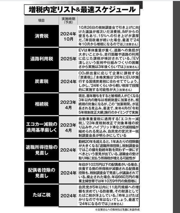 消費税は15%に、道路利用税を新設…岸田政権が狙う「大増税」が国民を押しつぶす!(女性自身)#Yahooニュースhttps://t.co/LeUxfxiyVY