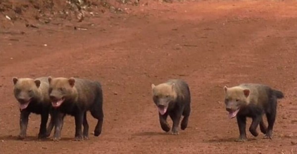 ブッシュドッグ(ヤブイヌ)のトリオ。いつも仲良しさん。 pic.twitter.com/tX3JEYgTYw