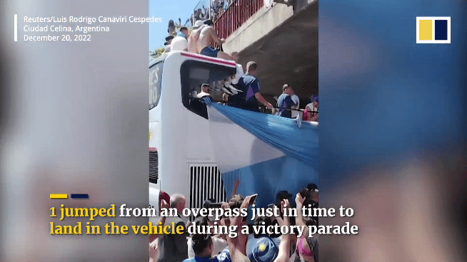 他にも、乗り移り損ねて頭部から流血している男性が、担架で救急車に運ばれながら、ファンと一緒に「アルゼンチン!」と、右手を振り上げながら連呼する姿も見られる狂騒曲ぶりだ。