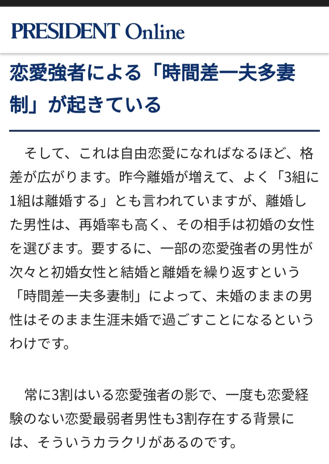 時間差一夫多妻制も性経験の男女格差に貢献してるだろうなぁ
