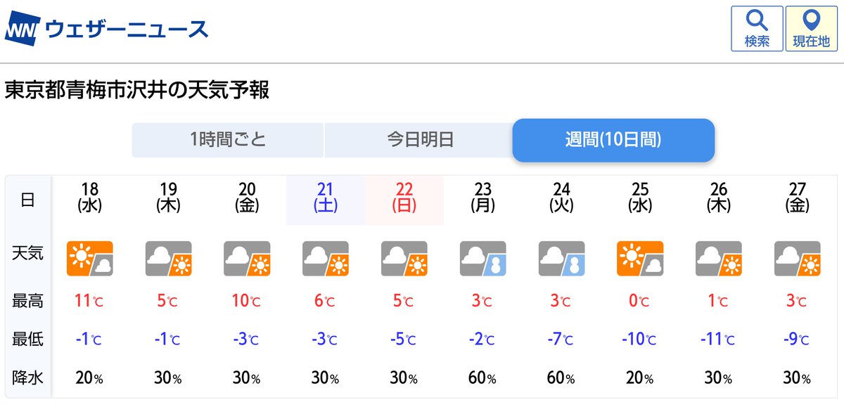 都心ならマイナス3度くらいで落ち着くな
