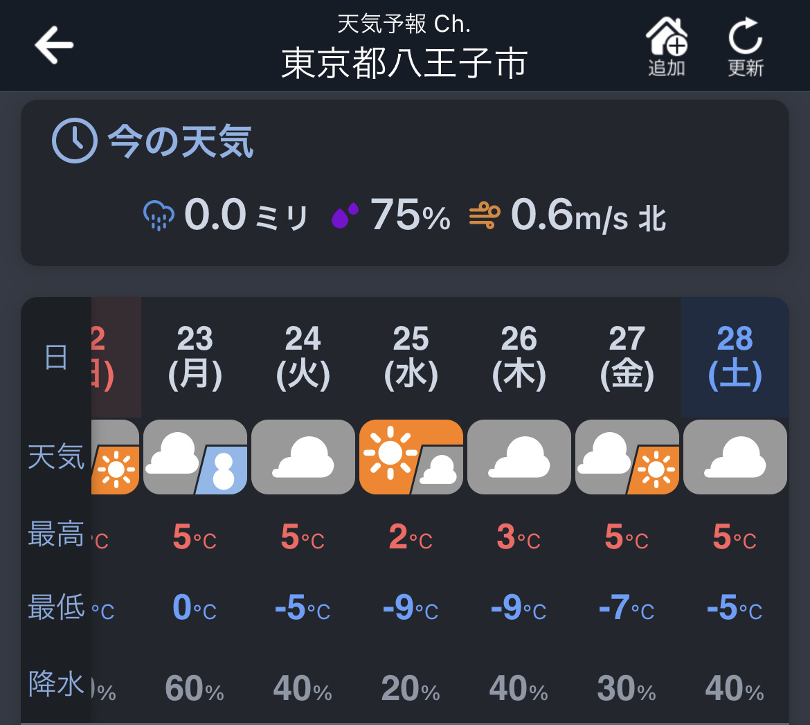 こっそりも何も八王子は-5~6度くらい毎年の事やから別に驚かへんわ