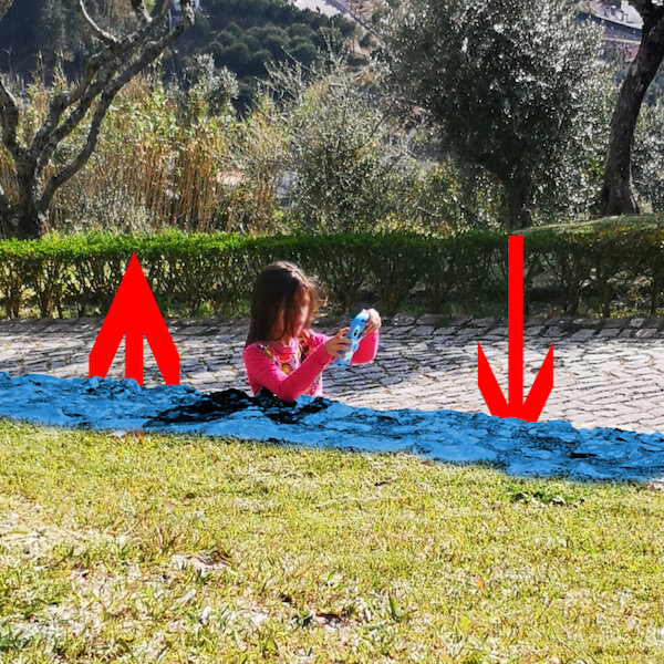 手前がマンホールで奥に座ってるんやな