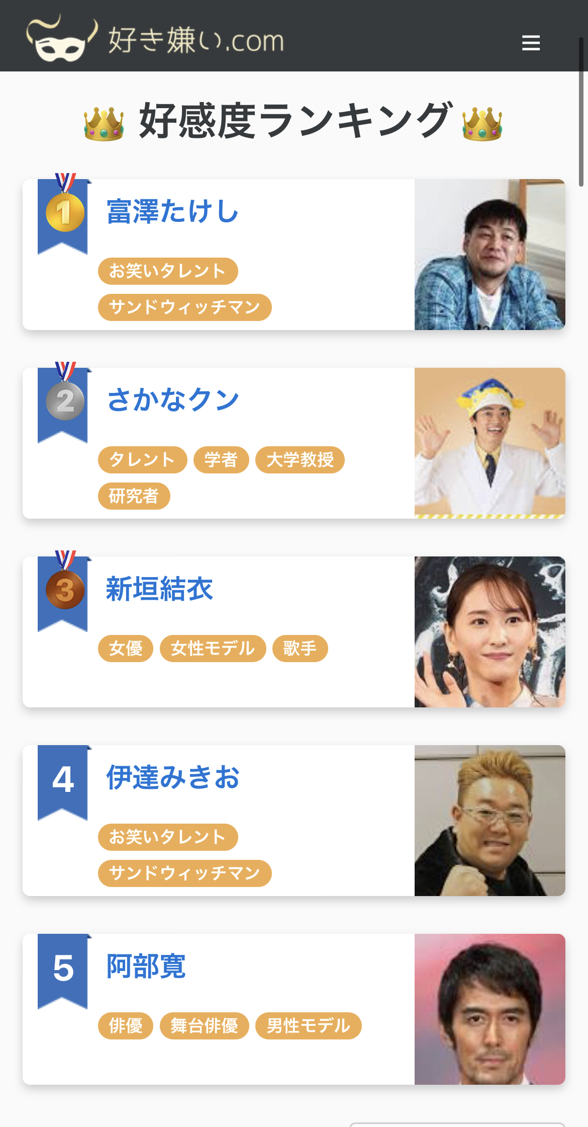 見たら好感度も不人気も上位の顔ぶれ納得やな