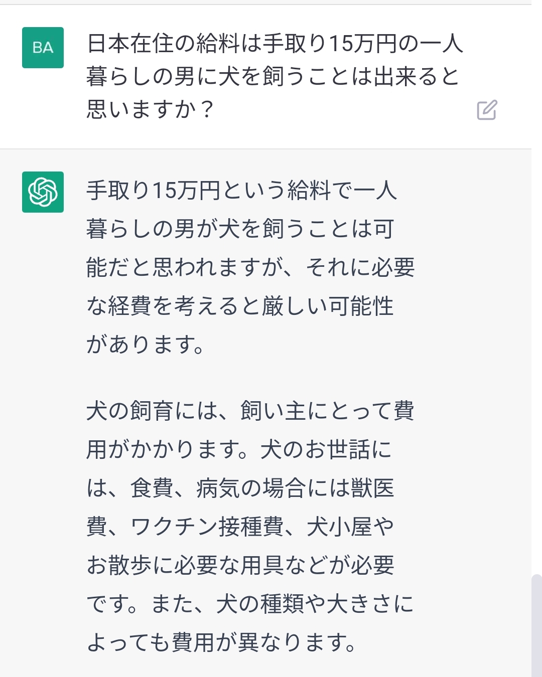 手取り15万男一人暮らしで犬を飼えるかって聞いてみて