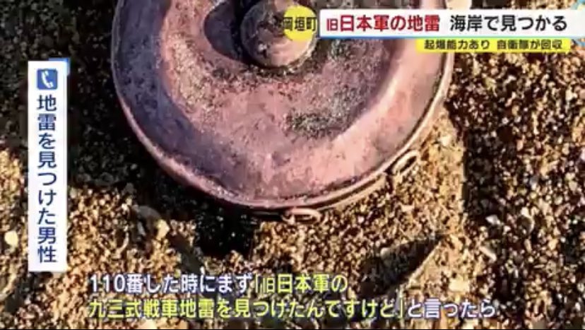 旧日本軍の地雷で間違いない。信管もしっかり残っているし爆発する可能性はある』と言われた」と話します。