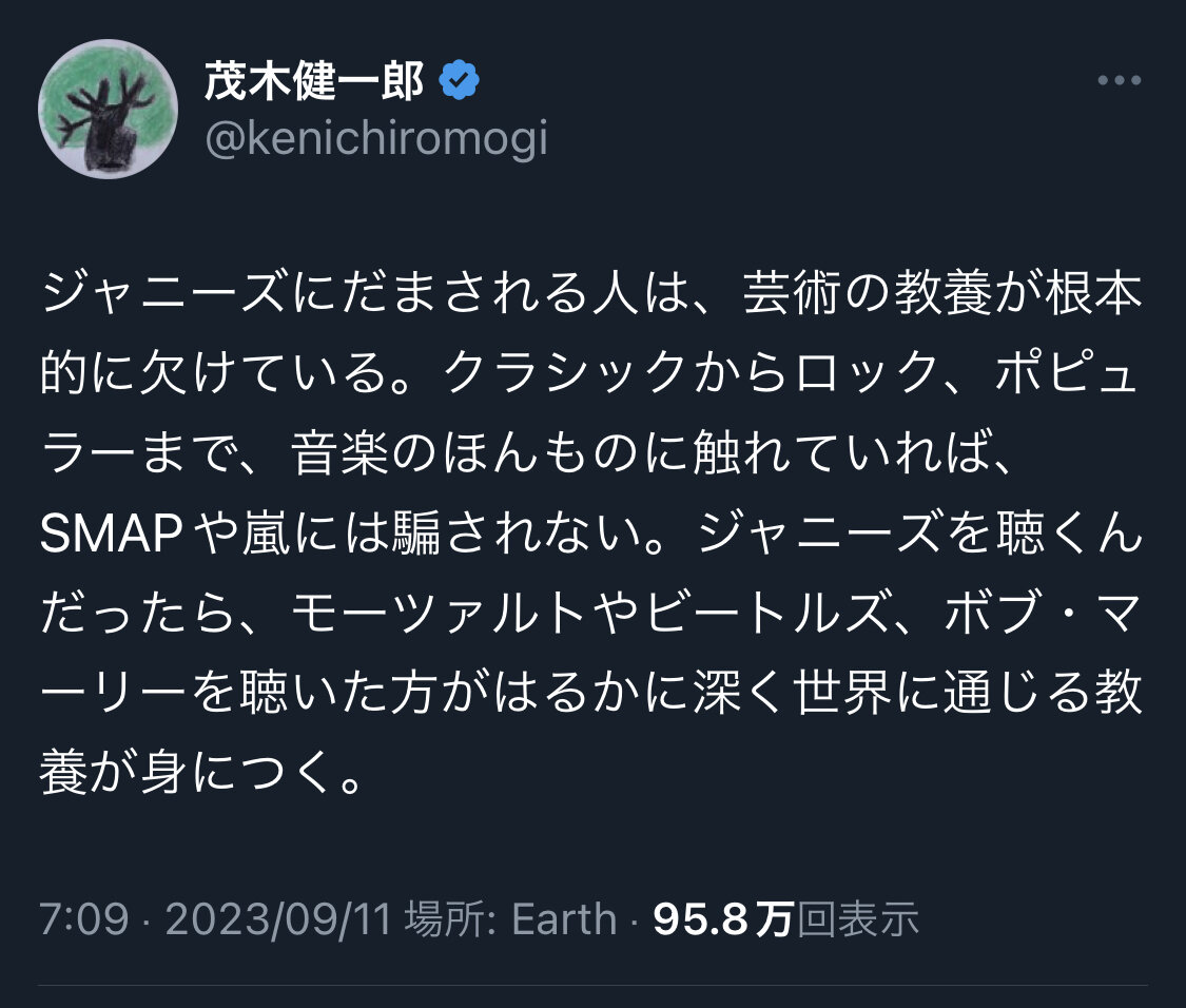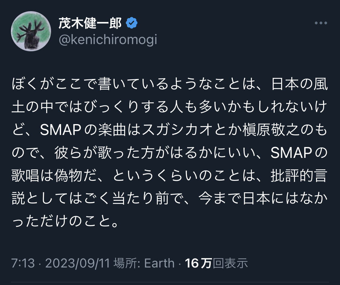 引用元: 【悲報】脳科学者の茂木健一郎さん、過去にSMAPを褒めまくっていた事を忘れてSMAP叩きを始める…
