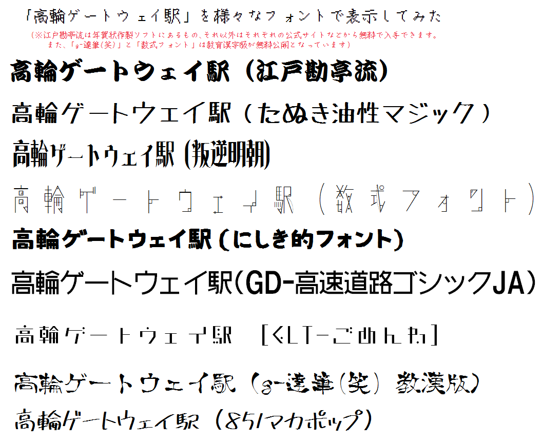 「高輪ゲートウェイ駅」の表記が「ヒラギノ明朝の等幅」なのはいかがかと思う