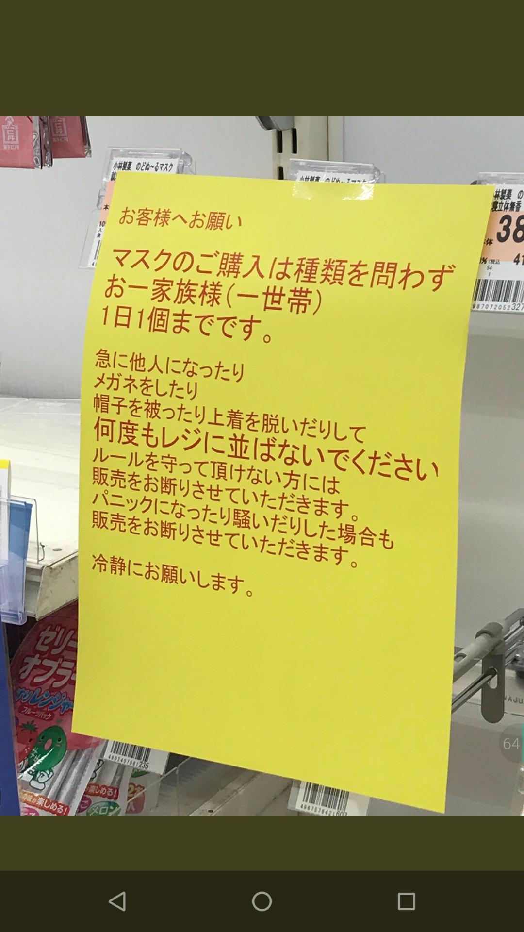 ドラッグストアさん、マスク買い占め客に異例の貼り紙「急に他人にならないでください」