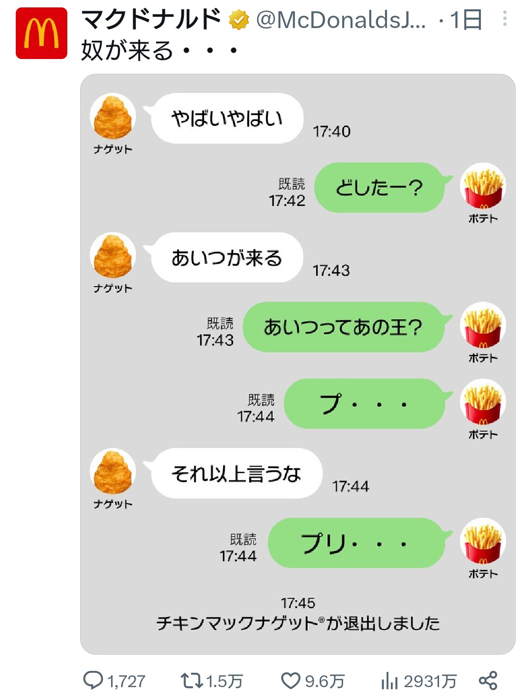 それよりマクナルがめっちゃ滑ってるんやけど
