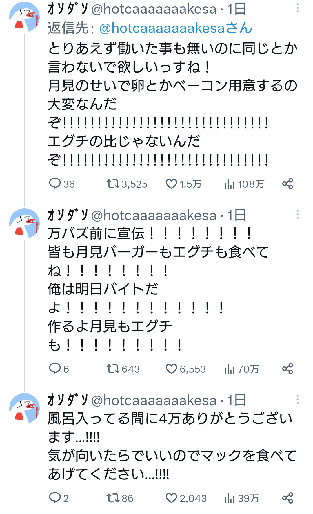値段が妥当かはともかくエグチと月見は全く別モンだわ