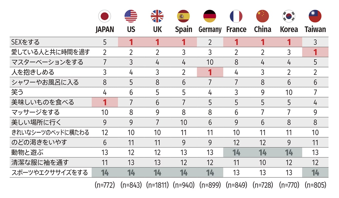 セ●クスとマスターベーションの順位を合わせて見ると興味深い