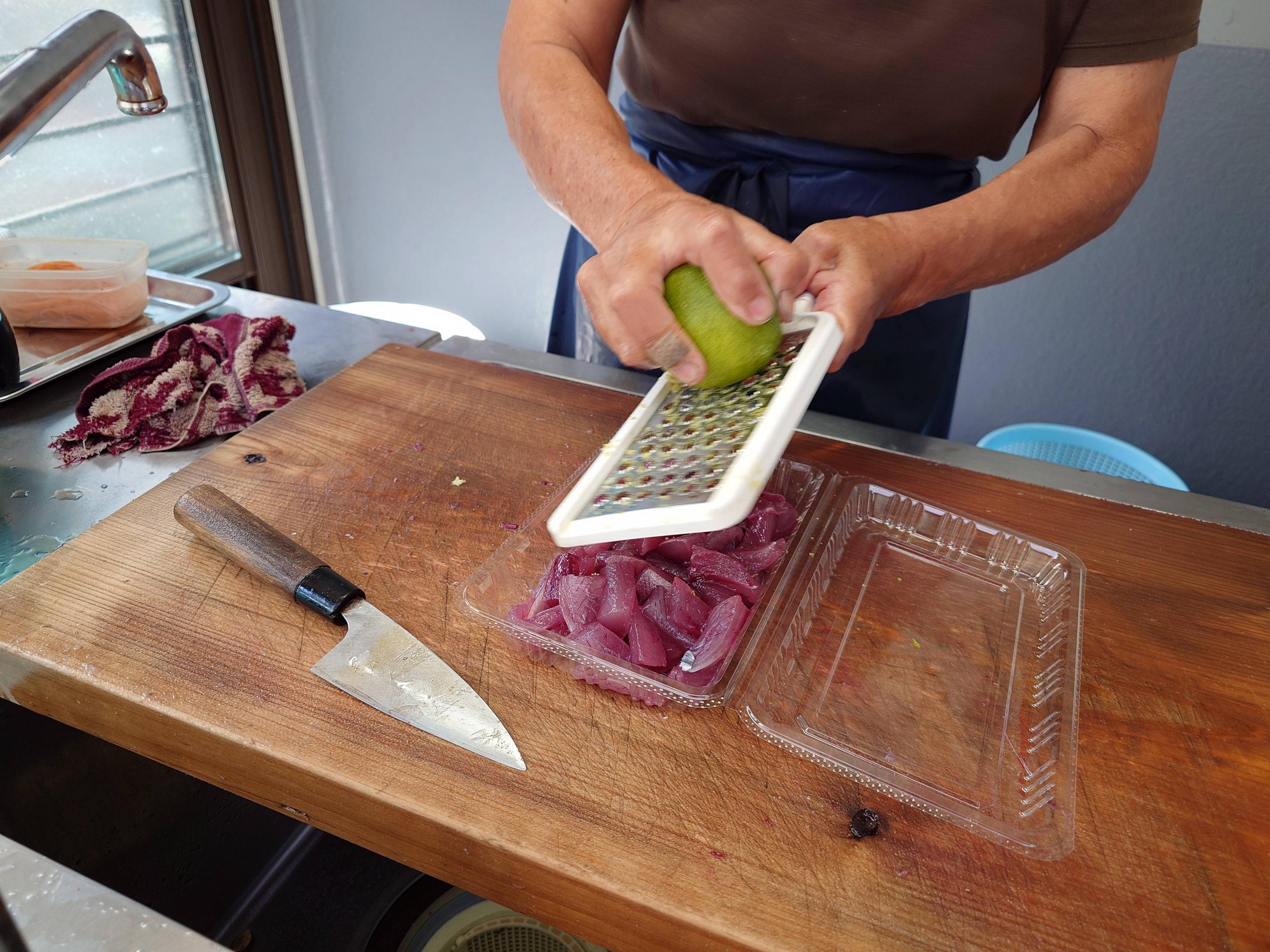 切り分けられたらパックに入れて仏手柑(柑橘)の皮をすりおろしてくれる