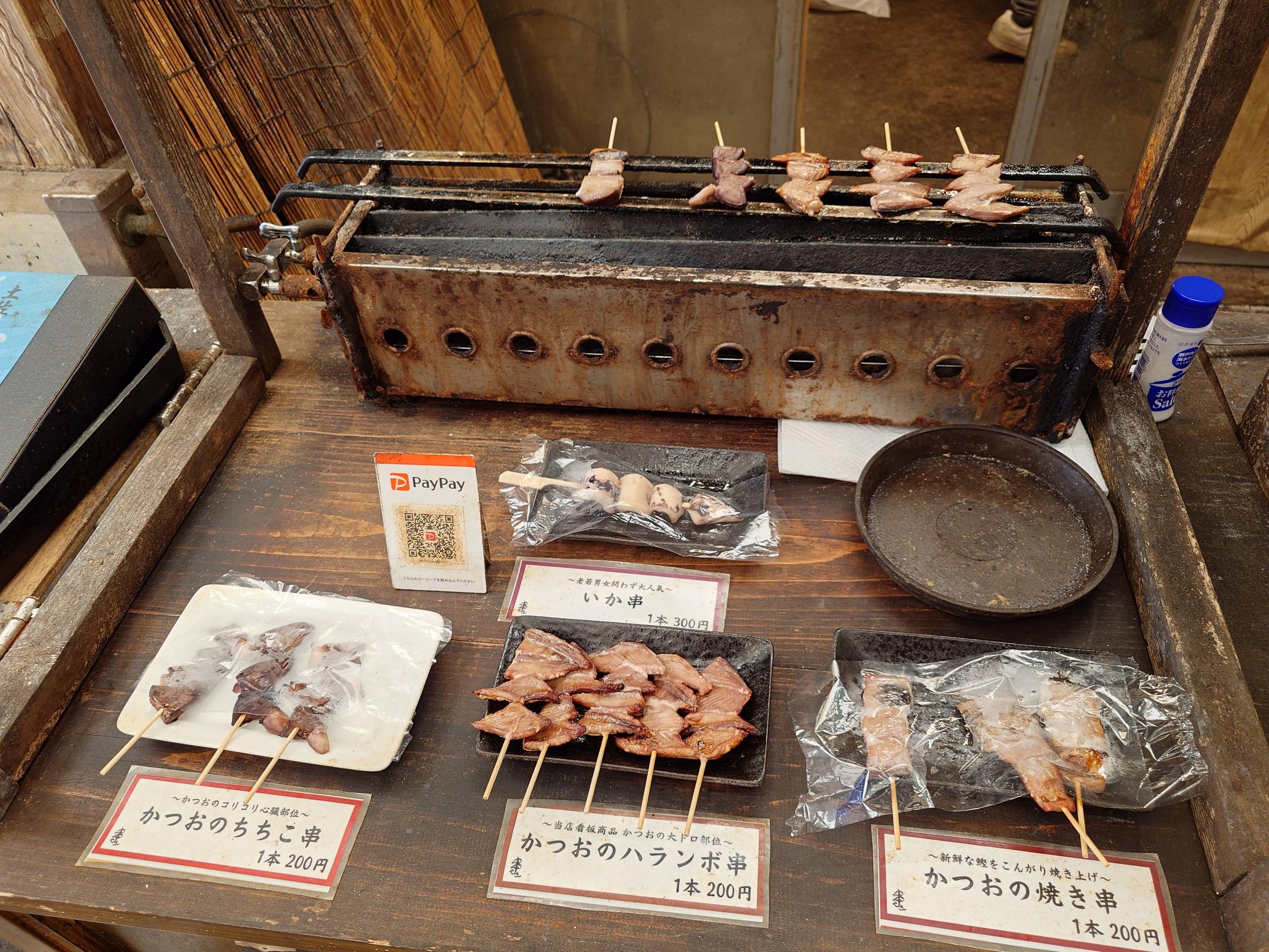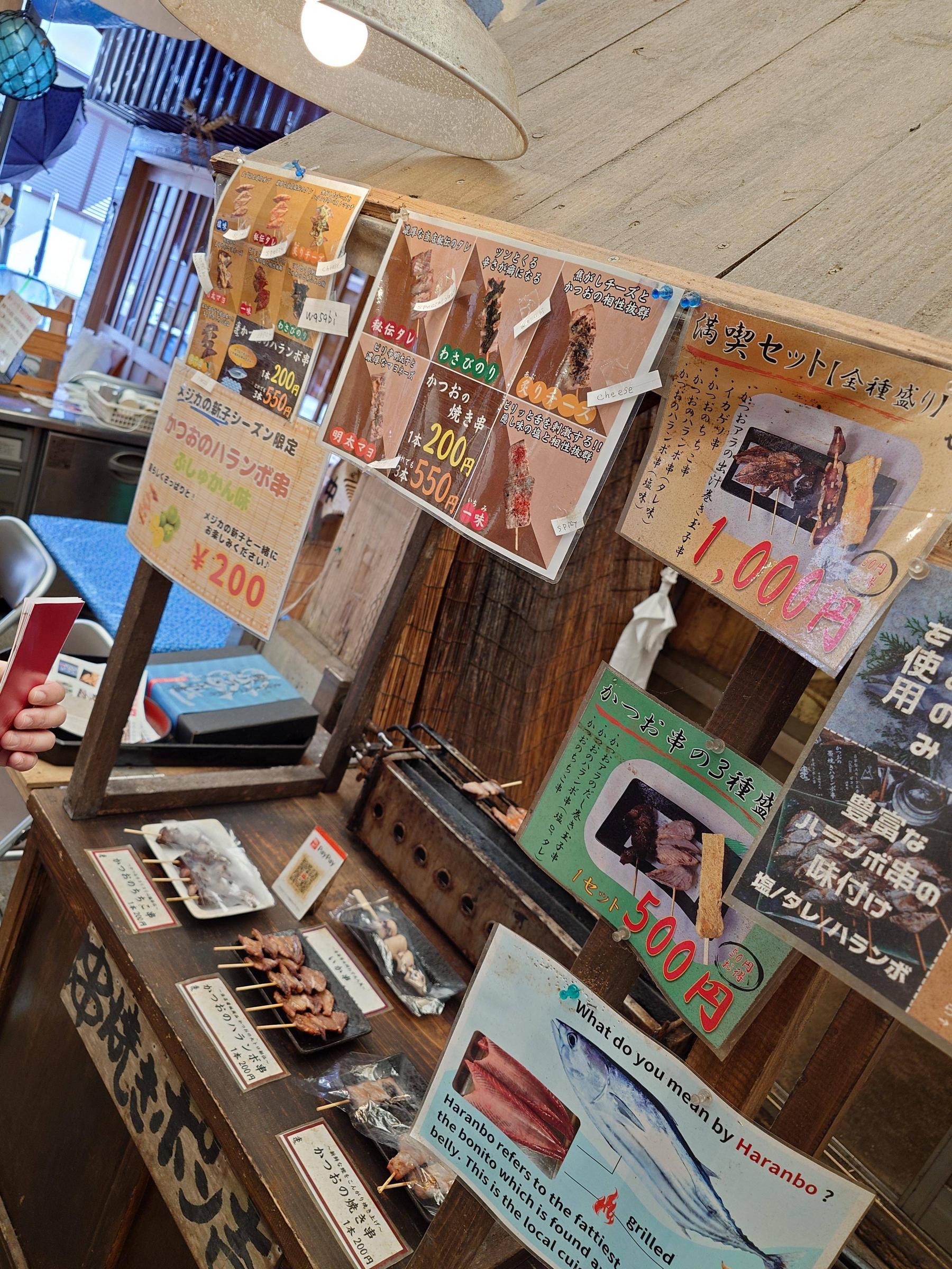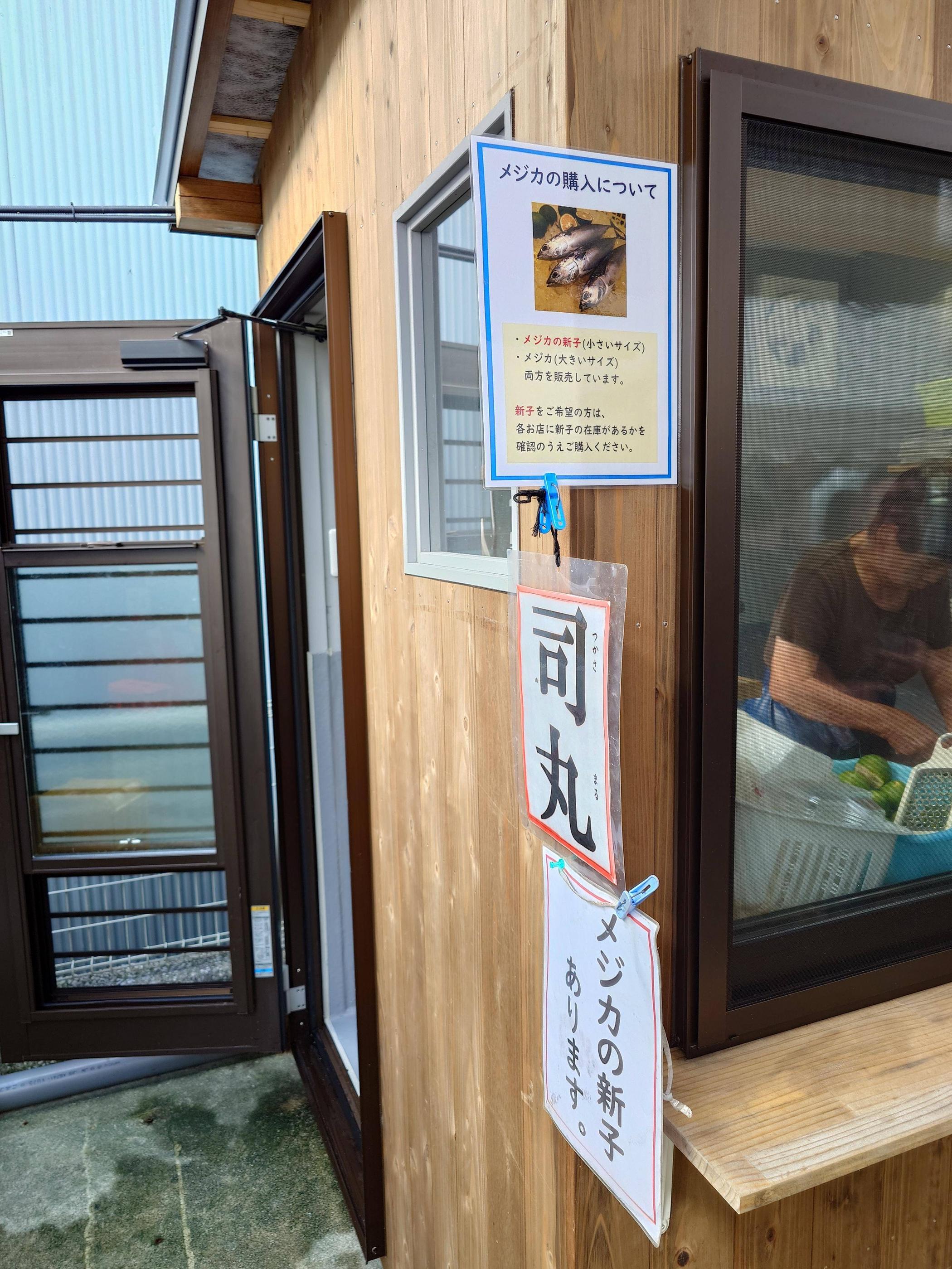 どの店も旦那さんが漁で釣ってきたばかりのメジカを奥さんがさばいて販売してるんだ