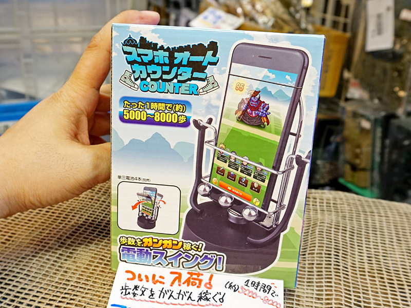 家にいながら歩数を稼ぐスマホ用振り子スタンドがあきばお~で1,300円