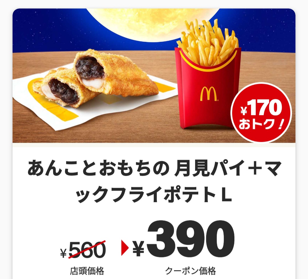 普通に考えて月見パイ1つとポテトL1つが390円とか高いだろ!