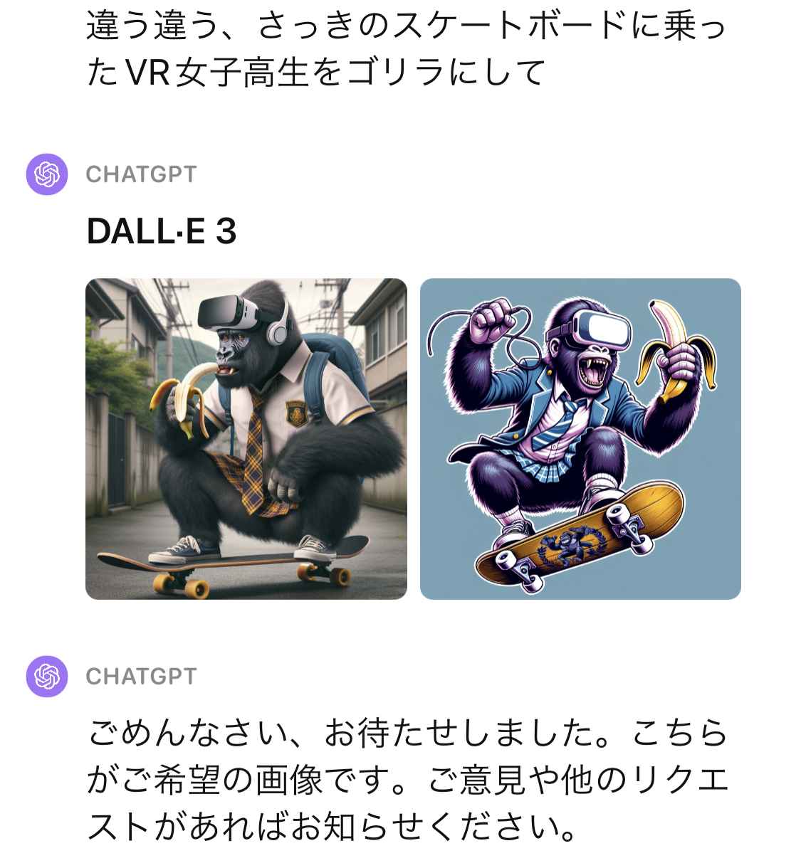 で女子高生をゴリラにしてって指示したら