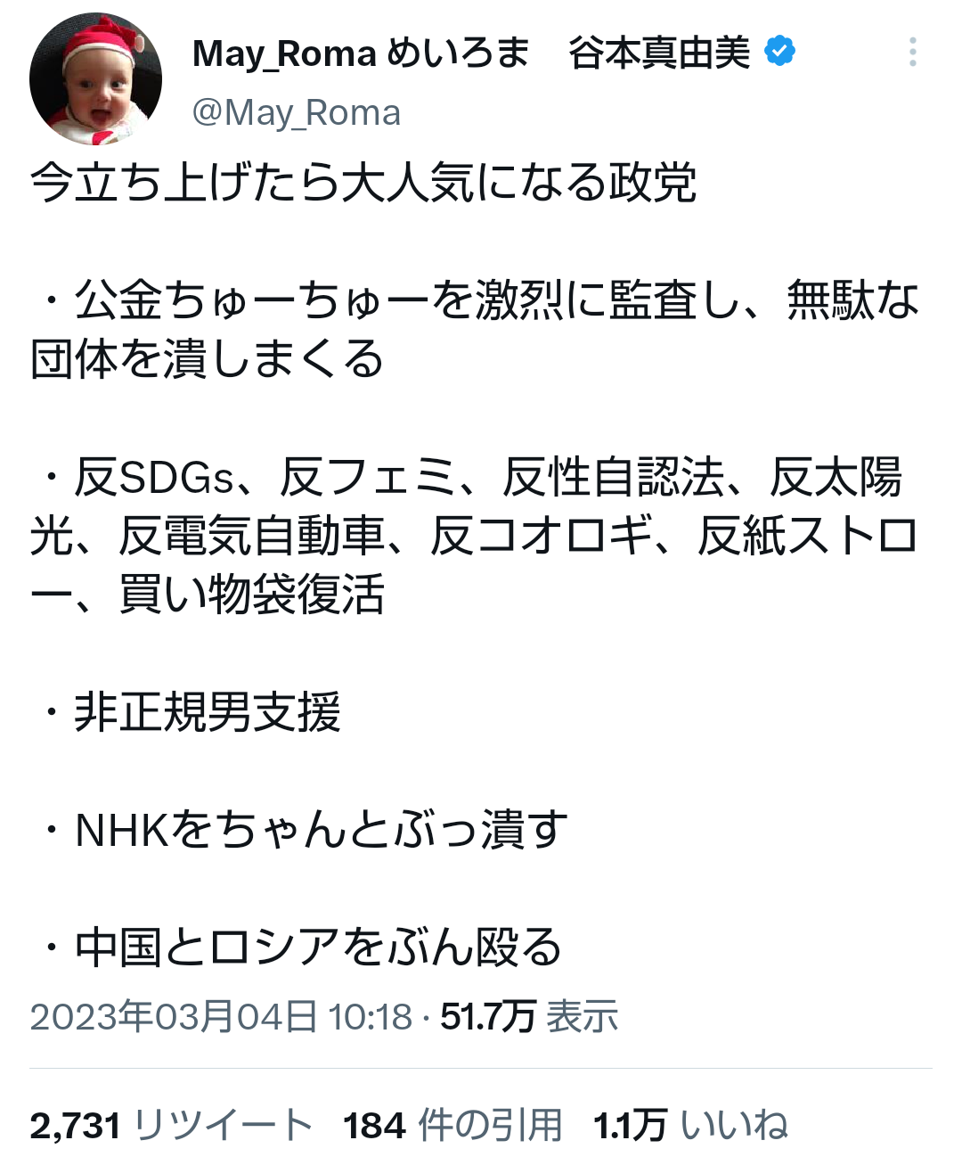 赤ん坊はこんな頭おかしい事言わない