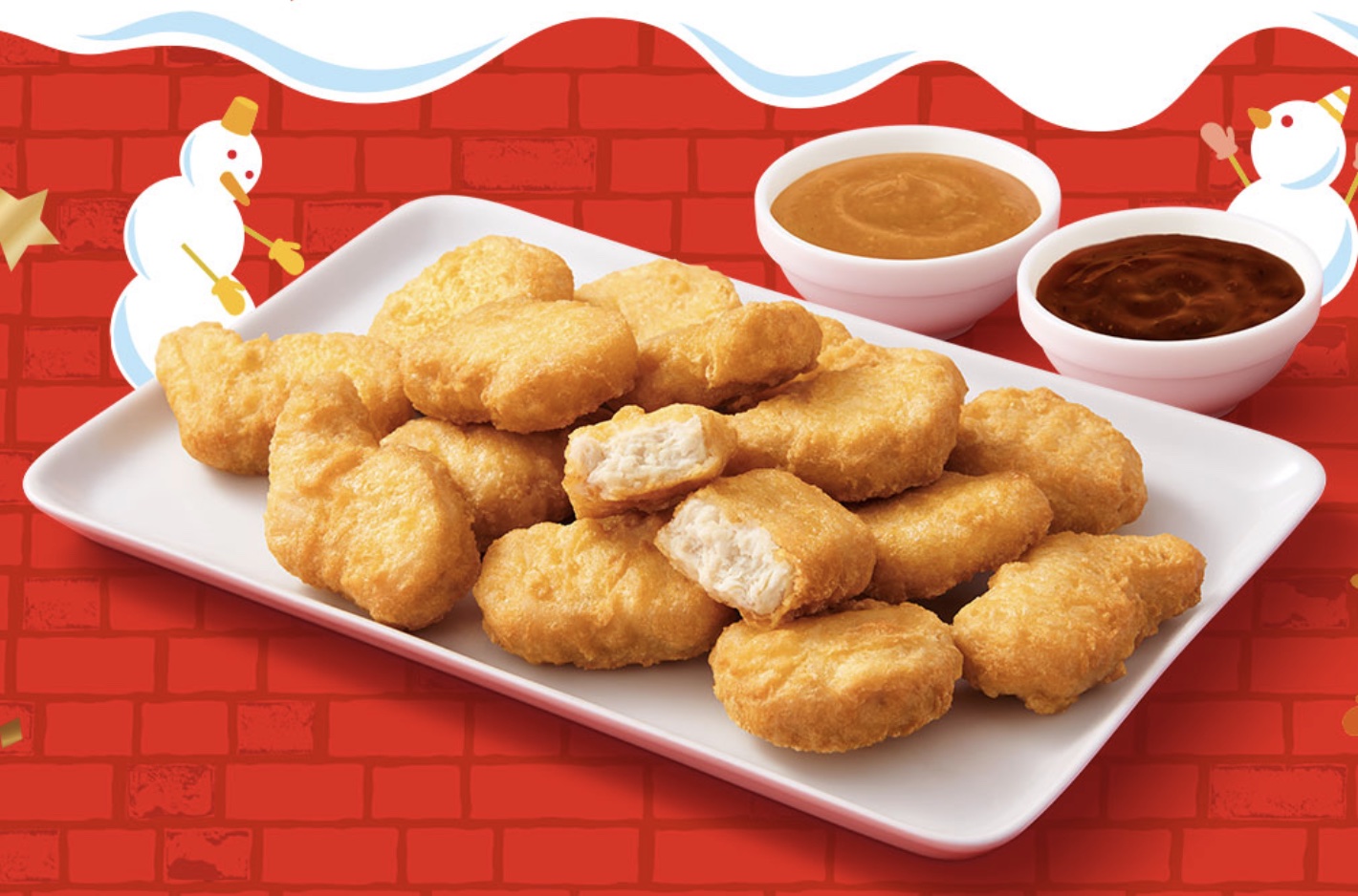 あわせて、15ピースを220円おトクな特別価格490円で販売するキャンペーンを12月25日まで実施。定番の「バーベキューソース」と「マスタードソース」に加え、1年の締めくくりにぴったりな2種類の期間限定ソースが登場する。
