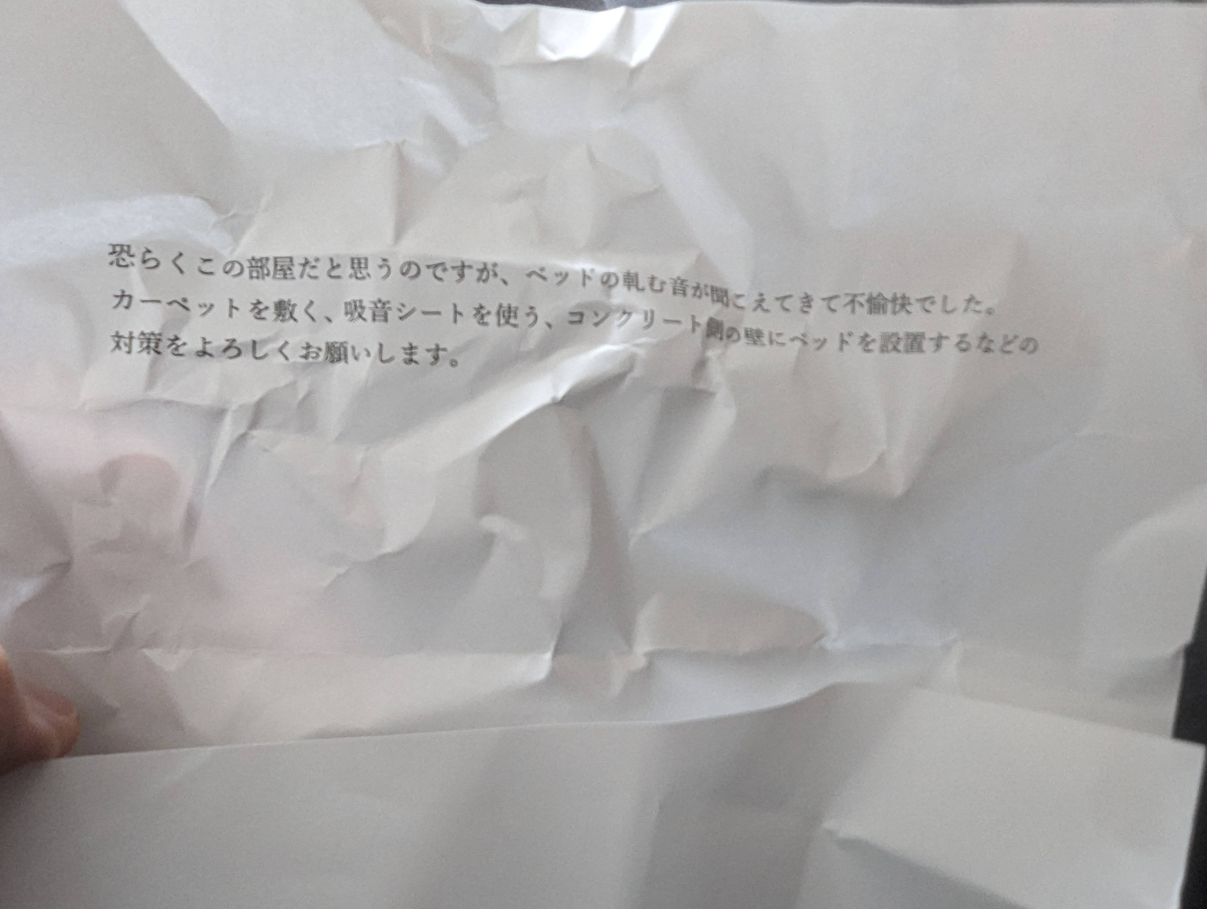 ポストに手紙が入っててベッドの軋む音が不愉快って書いてた