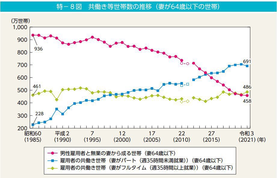 なおフルタイムで働く既婚女性の数は40年間ずっと横ばい