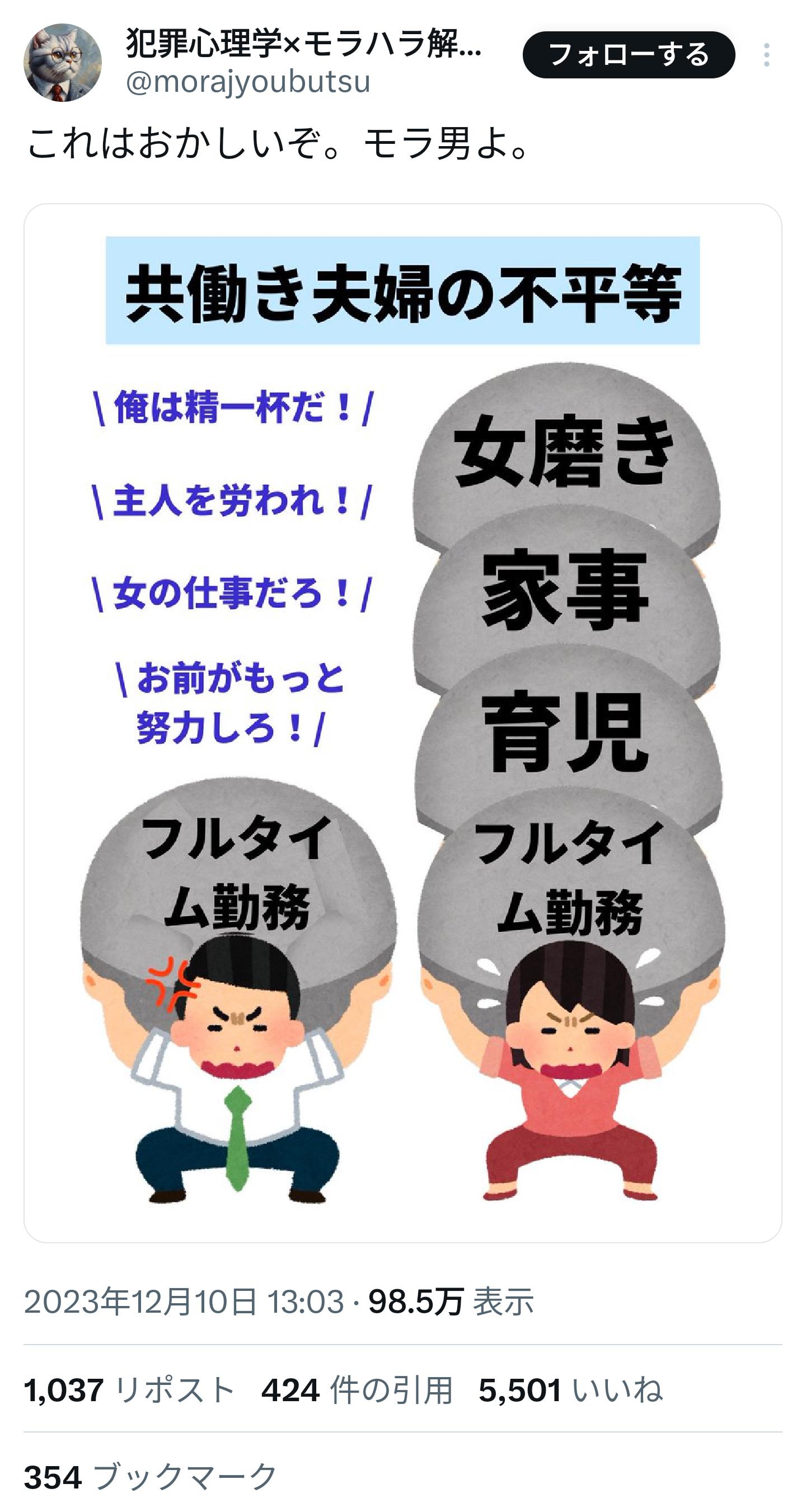引用元: 【画像】共働き夫婦の不平等、ガチのマジでエグすぎる……