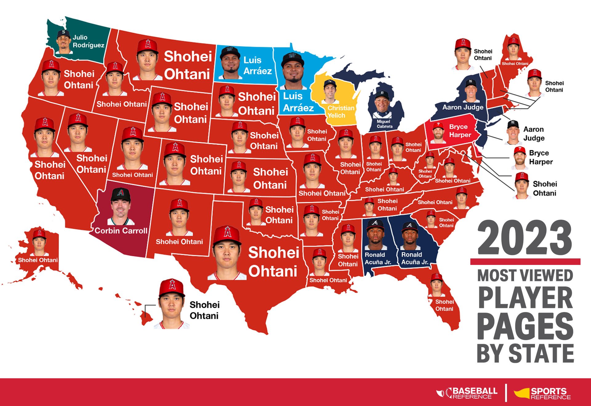 それぞれの州で最も閲覧された野球選手