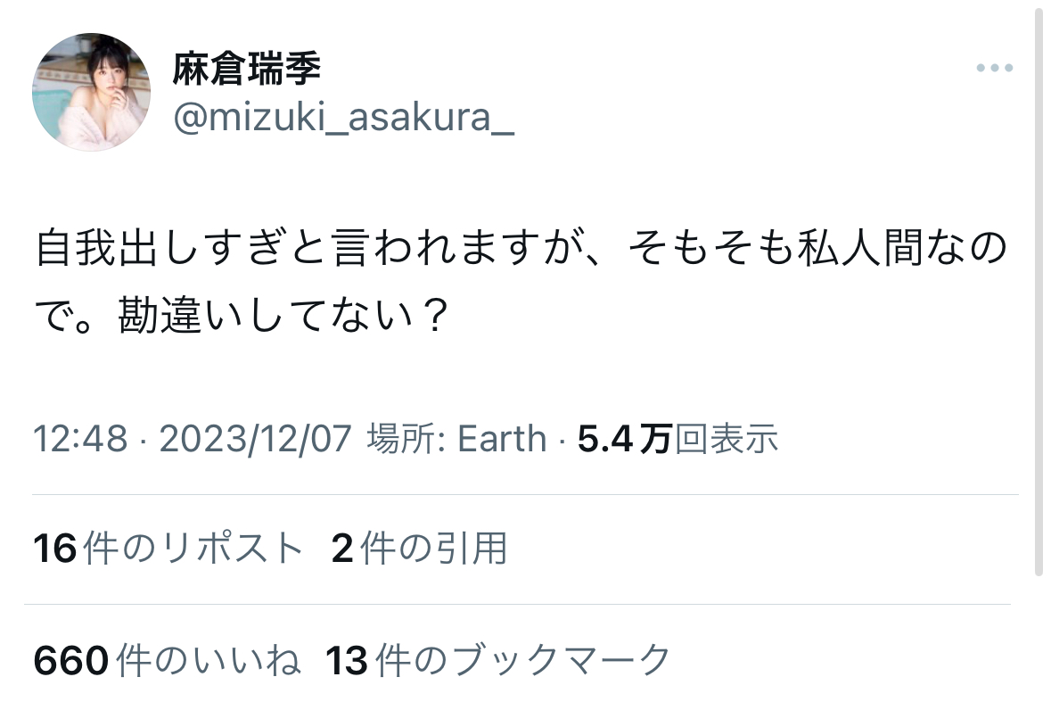 — 麻倉瑞季 (@mizuki_asakura_) December 17, 2023
