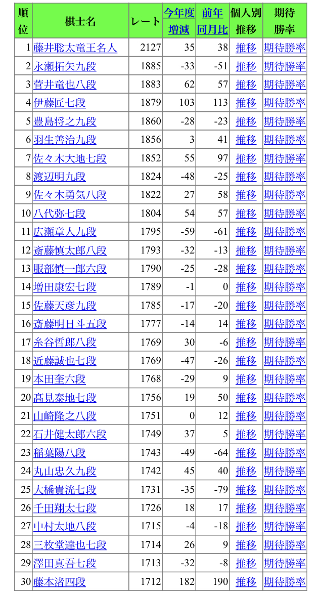 羽生や渡辺がずっと上位帯にいるのもやばくね?