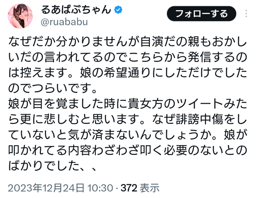 — るあばぶちゃん (@ruababu) December 23, 2023