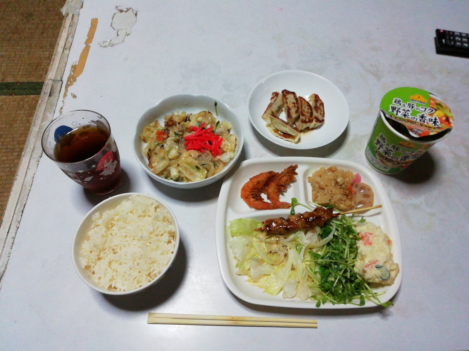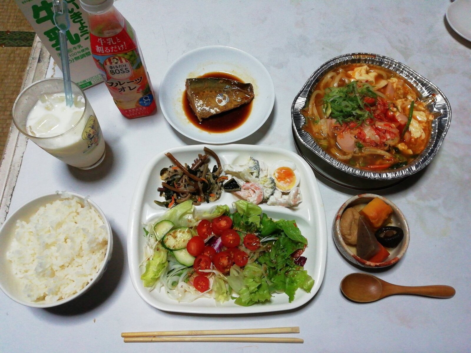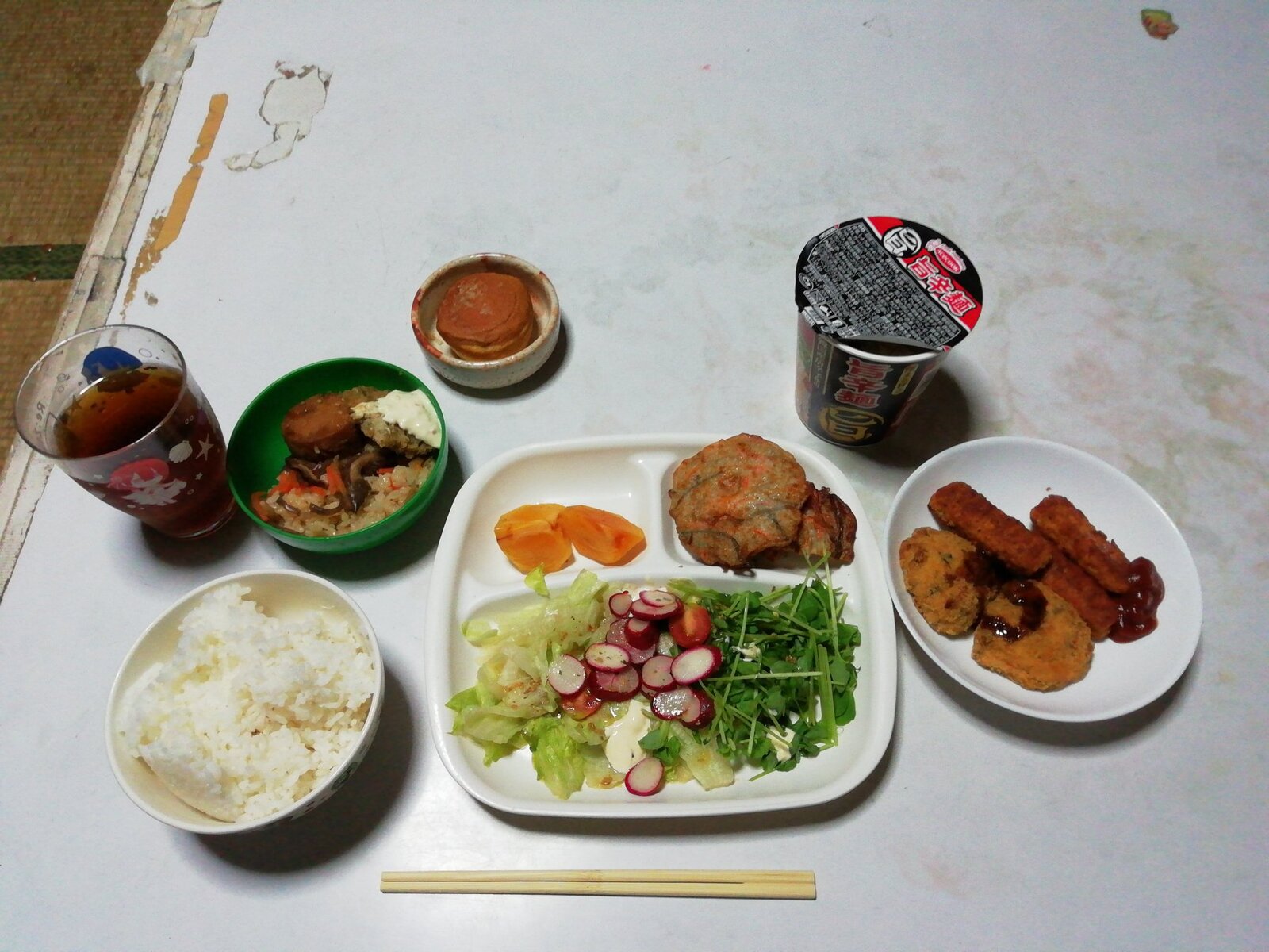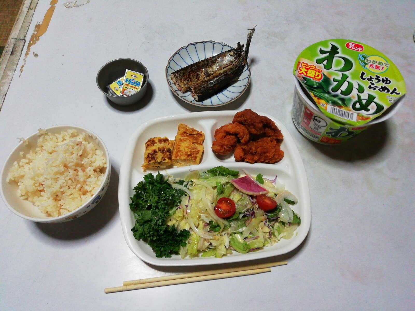 盛り付けが汚いだけでこんだけ品数揃えてるの尊敬するわ