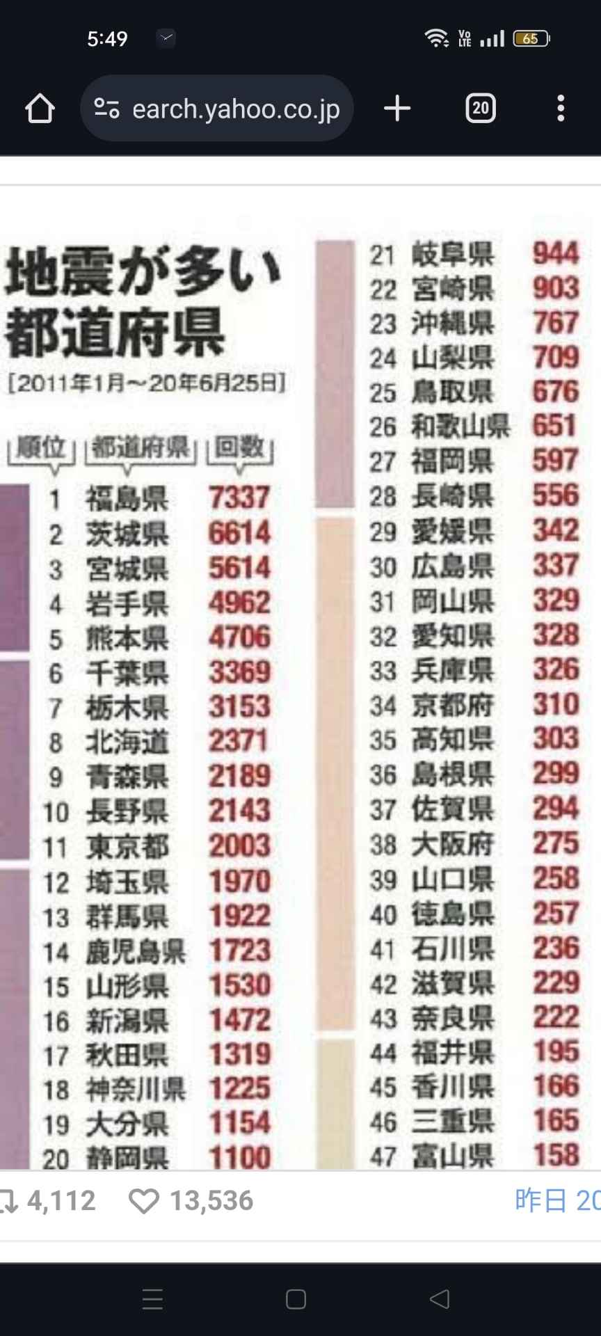 2011だけで小さいの合わせたら東北で数千回あったから意味ない😓🤚