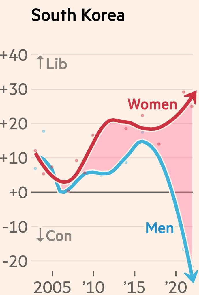 世界各国で若い男女の間に大きなイデオロギー格差が生まれつつある