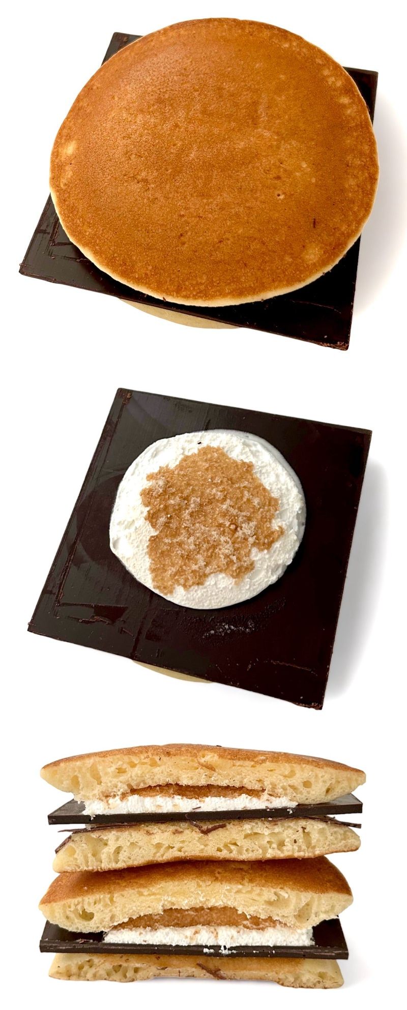 美味そうではあるがふわふわのパンケーキと板チョコの食感が合わんやろ