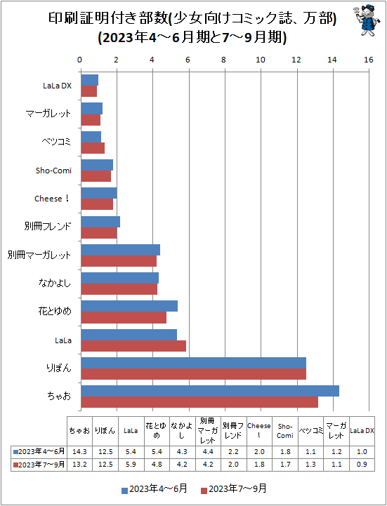 ちゃおと発行部数大差ないからそろそろ小学館はマジで少年サンデー切るかもな