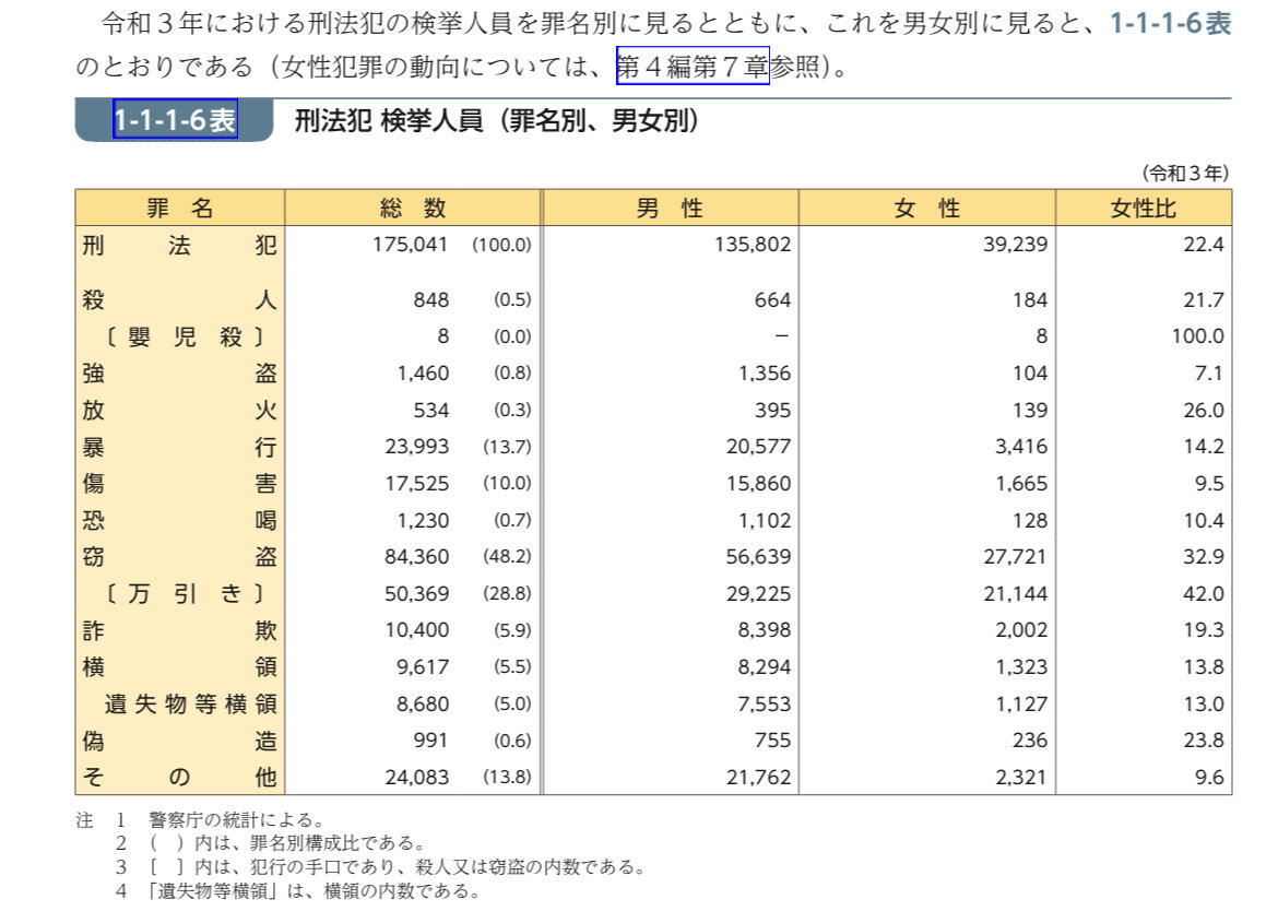 刑法犯の男女比率貼っとくで