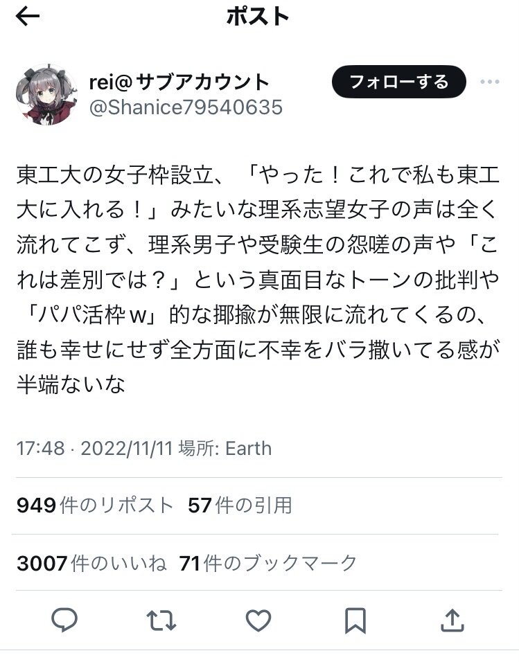 一流大学の女子枠、公務員試験の露骨な女性優遇、ホスト狂い女への公的支援、あげく司法の女子割など