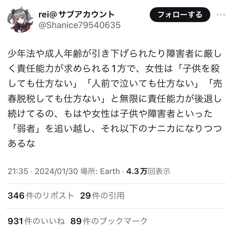 引用元: 【画像】現代の日本の女さん、完全に特権貴族だと話題に。もうこれ天竜人だろ…