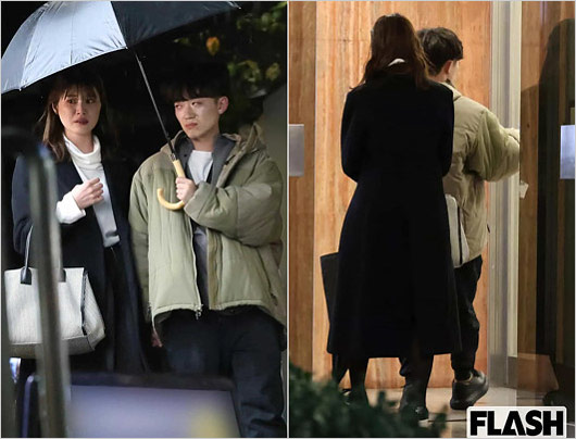 2月下旬の深夜1時。いつもどおり出演を終え、帰路についた市村は、自宅近くにあるしゃれたバーに直行した。店内で待っていたのは、色白マッシュヘアの文化系男子だ。2人は1時間ほどして店を出ると、相合傘で“自宅”へと消えていった――。