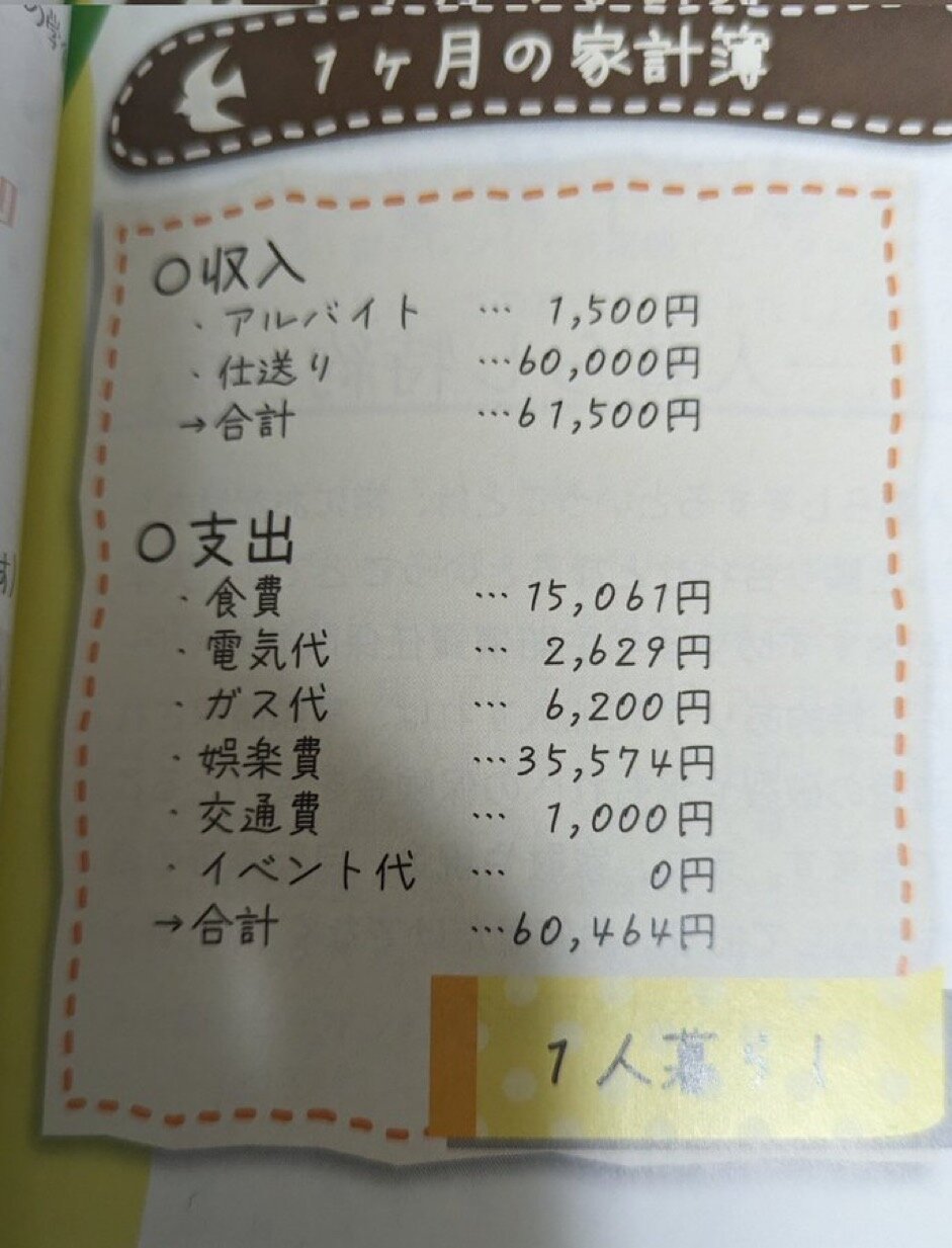 これ実質仕送り2万くらいでしょかなり頑張ってるな