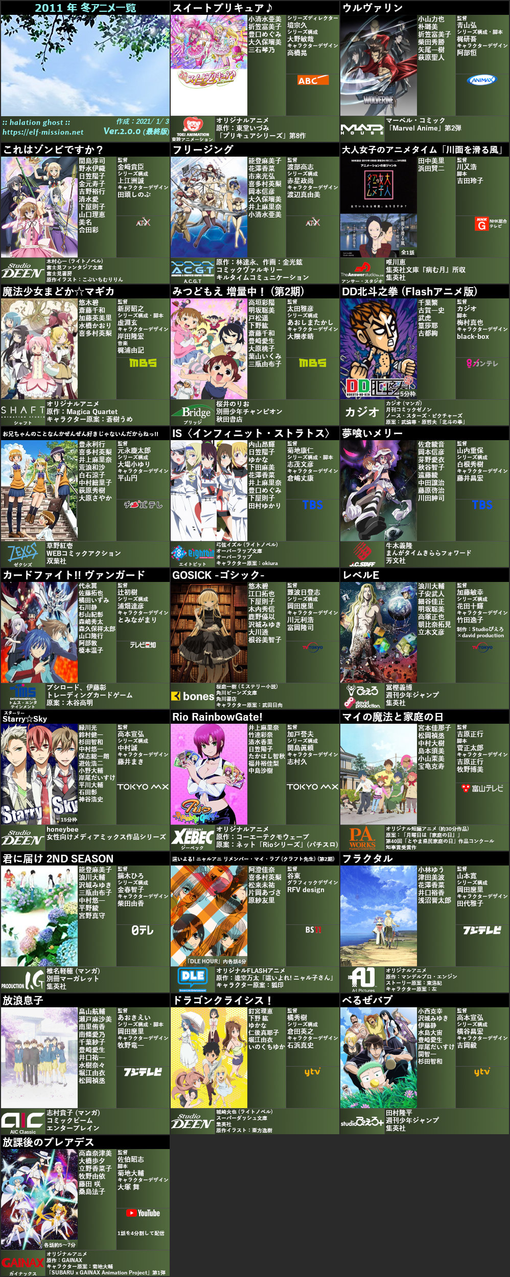 ちな2011冬アニメ一覧これ