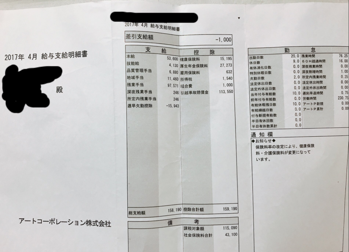 【画像】アート引越センターで働く人の給与明細、グロい