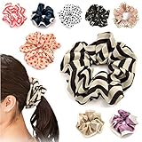 シュシュ ヘアゴム ヘアアクセサリー シフォン ドット カモフラ 黒 リボン B,1