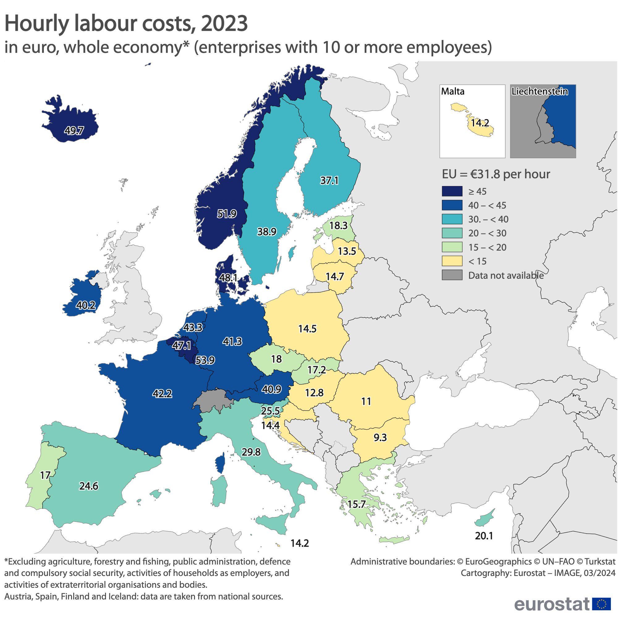 EU平均 31.8ユーロ(5,191円)