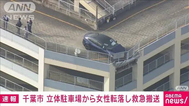 ショッピングモールの立体駐車場から女性が転落する事故があった。