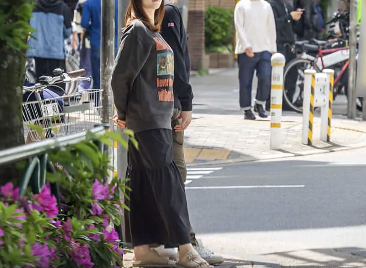 2人は30分ほどかけて食べ終わると、男性がまとめて会計を支払う。常連客なのか、店員としばらく雑談し、別れの挨拶をすると店を後にした。信号待ちの間、2人は自然と寄り添うと、肩をくっつけてお互いの顔を見合わせながら談笑。松村は何度か、てへへと自分の頭を掻く仕草を見せるなど、かなり心を許している感じが傍目にもわかる。信号が青に変わると、2人はごく自然に “愛の巣” へと戻っていった。