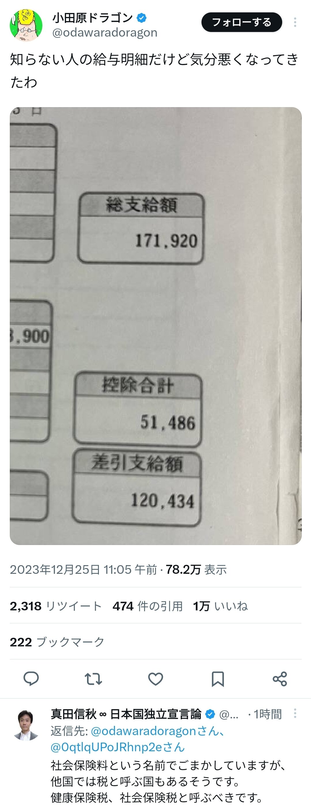 やばいのは控除額じゃなくて総支給額だろ